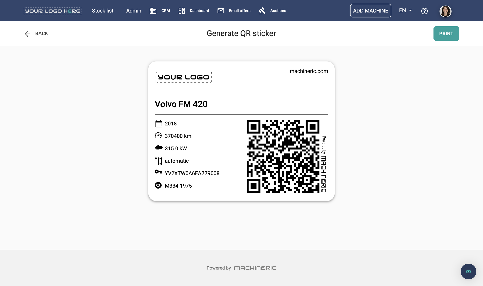 Machinerics QR-kodlösning förändrar hur du interagerar med din maskinpark. Genom att tilldela varje maskin en unik digital identitet eliminerar vi behovet av osammanhängande kalkylblad och manuella lagerloggar. Våra QR-koder för underhåll och spårning av utrustning ger omedelbar tydlighet i realtid, vilket säkerställer att korrekta data alltid finns nära till hands, oavsett om du är på gården eller på en avlägsen arbetsplats.
